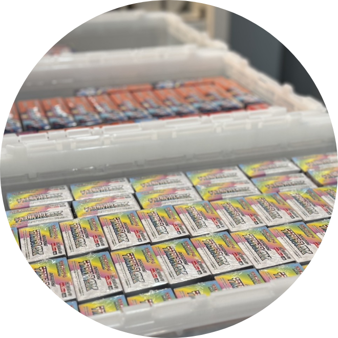 大量の商品買取・販売に対応。安定した在庫確保やスムーズな流通をサポートいたします。トレーディングカード業界への新規参入を検討されている方にも、在庫確保や販売ルートの一部として当社とのお取引をご活用いただけます。